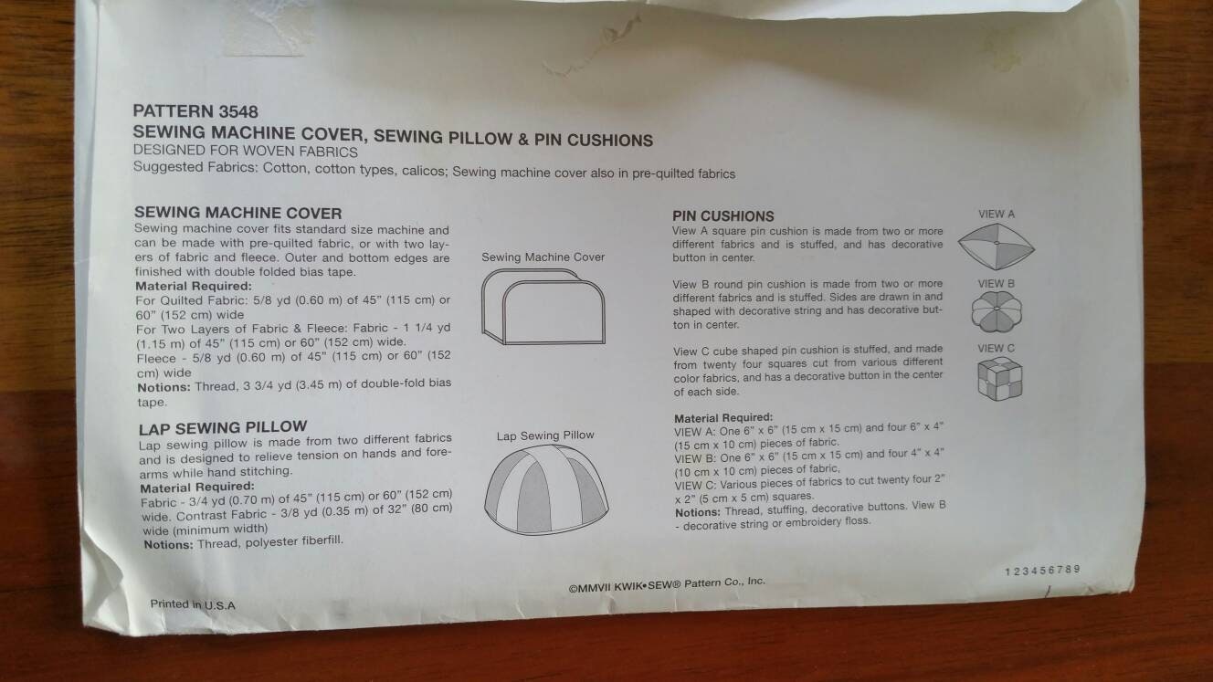 Kwik Sew 3548 Sewing Machine Cover Sewing Pillow And Pin Etsy